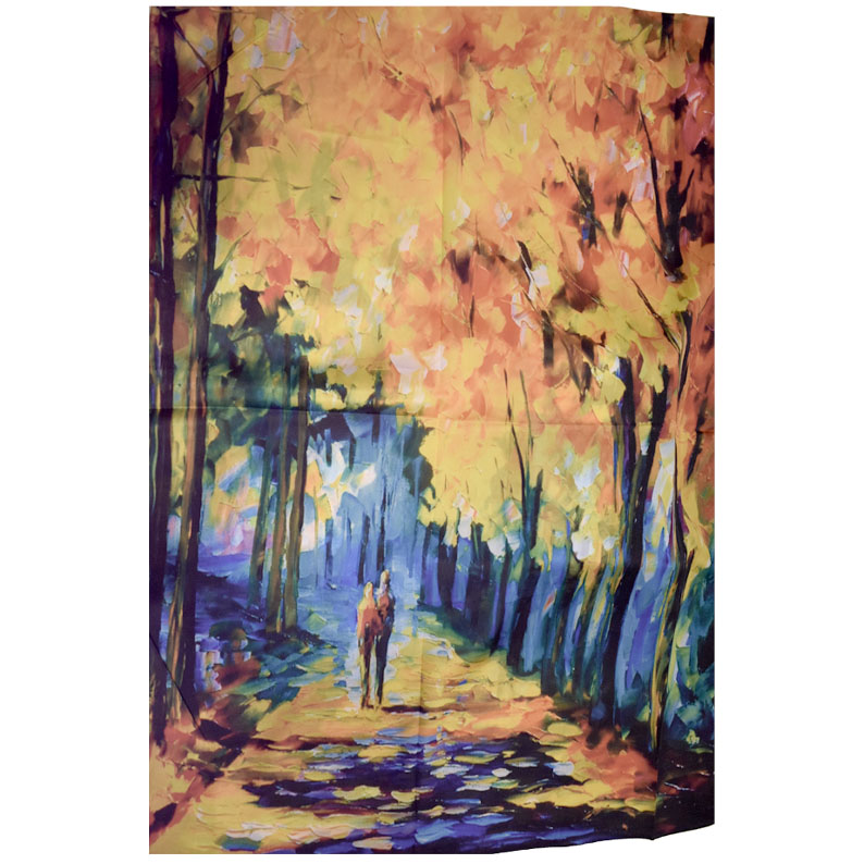 Pashmina en seda inspirada en Arte en tonalidades amarillas y marrones.