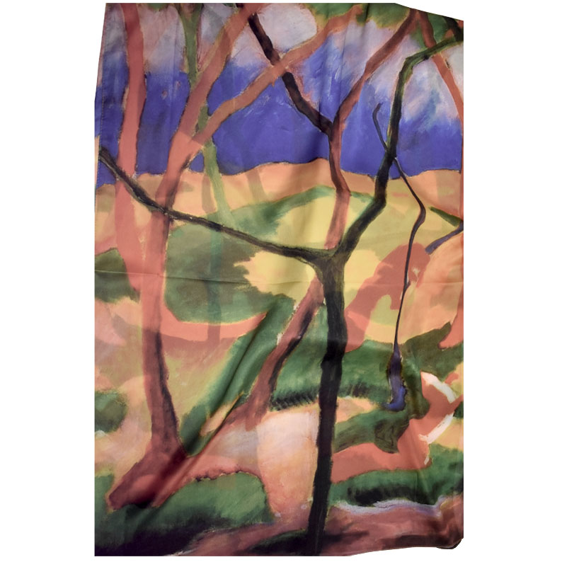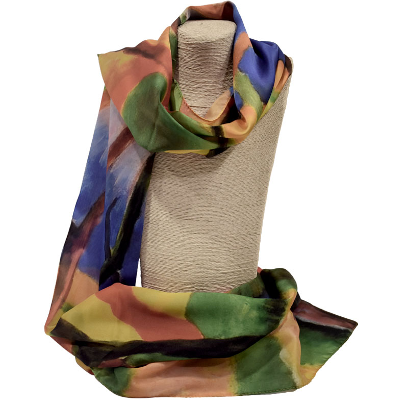 Pashmina en seda inspirada en Arte en tonalidades verdes y azules