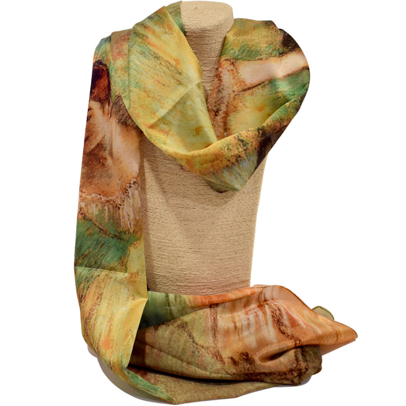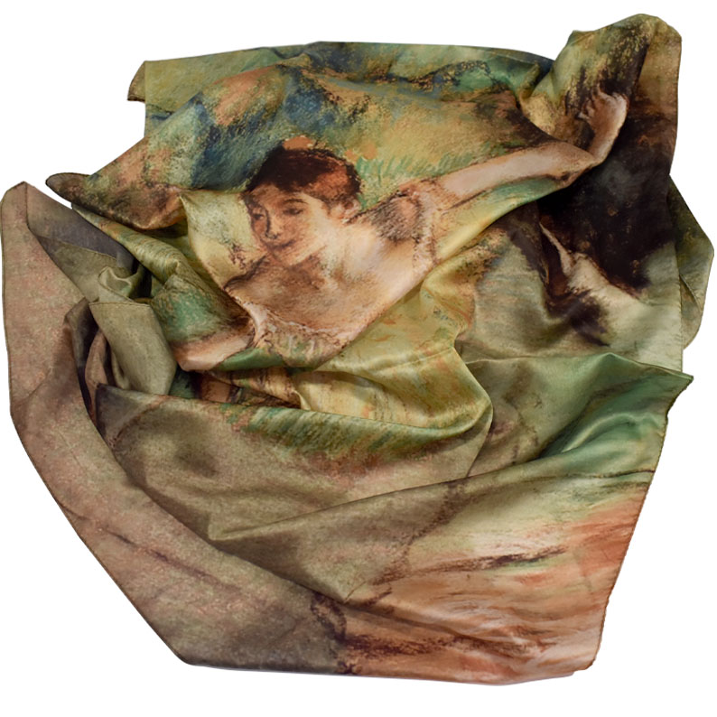 Pashmina en seda inspirada en las bailarinas de Edgar Degas con tonalidades verdes.